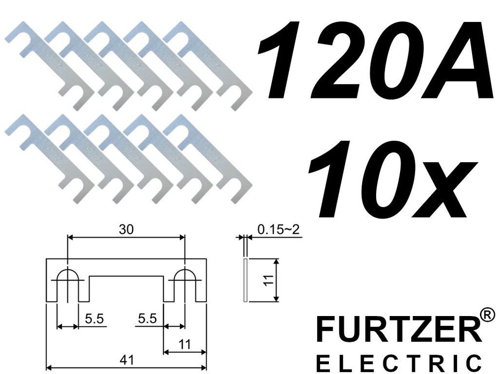 - Abemssung der Sicherung Typ Streifen: Breite 41 mm, Lochabstand 30 mm, Höhe 11 mm